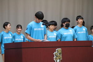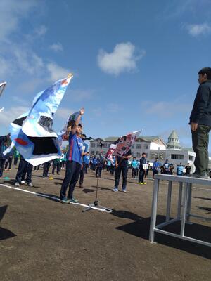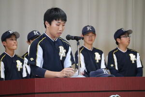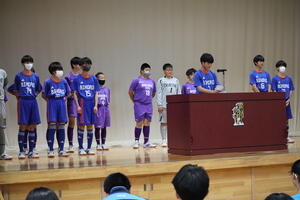 いよいよ中体連地区大会が始まります。全ての部活動が練習の成果を発揮し、活躍することを願い、全校生徒で応援しました。
